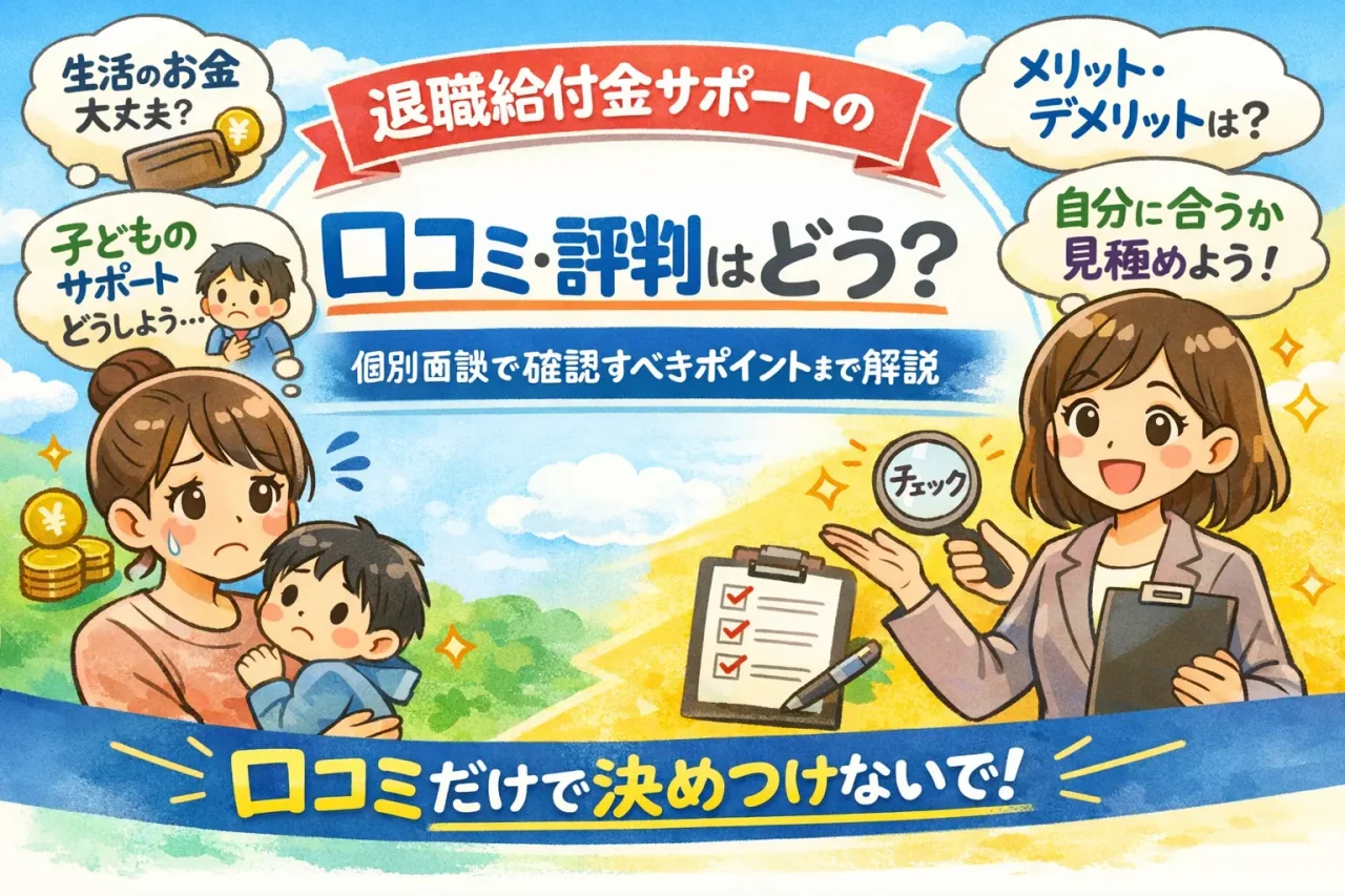 「退職給付金サポートって、本当に大丈夫なのかな…」「怪しいって口コミもあるし、失敗したらどうしよう」 そんな不安を抱えながら、ここにたどり着いたのではないでしょうか。 特に、発達障害のあるお子さんを育てているママにとっては、仕事を辞める=生...